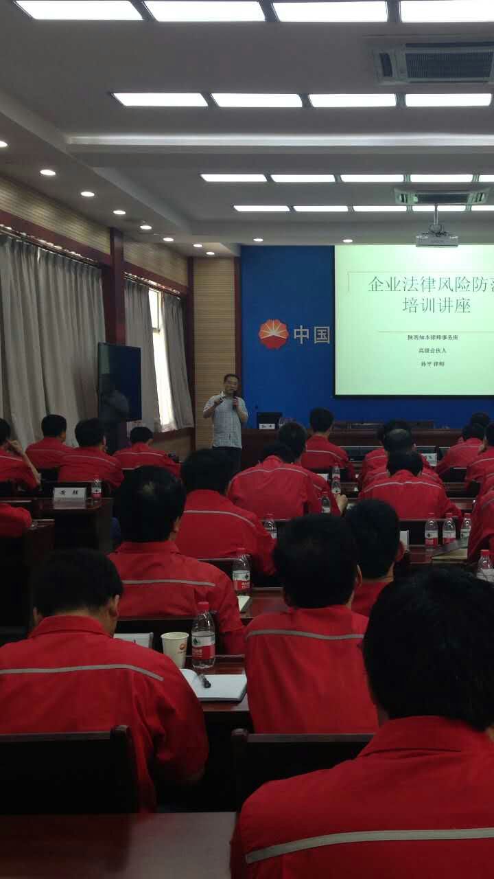 2015年5月29日下午,本所高级合伙人孙平律师为宝鸡石油钢管有限责任公司作了《企业法律风险防范》方面的法律培训。在3个多小时的培训中,孙平律师从7个方面进行了讲解:1、企业设立、运营中的法律风险;2、合同订立、履行过程中法律风险;3、企业并购法律风险;4、知识产权法律风险;5、人力资源管理法律风险;6、企业财务税收法律风险;7、涉及刑事犯罪的法律风险。